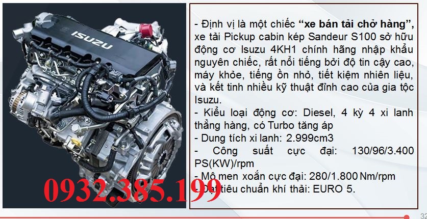 – Kiểu loại động cơ: Diesel, 4 kỳ 4 xi lanh thẳng hàng, có Turbo tăng áp